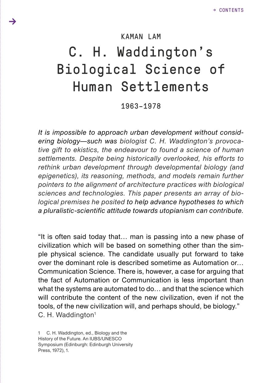 C. H. Waddington’s Biological Science of Human Settlements